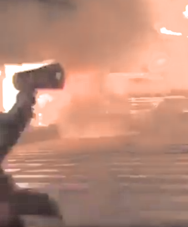 「炎上する様子の動画は映していない」と否定しており、